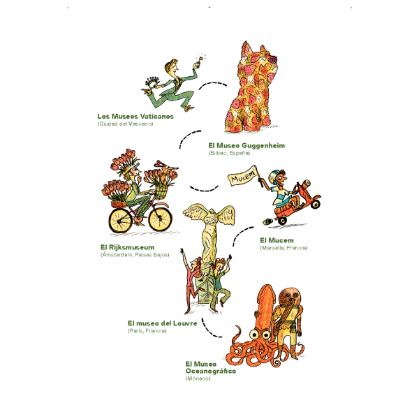 Te acompañarán en tu paseo los mejores guías: conservadores, arquitectos, conserjes, artistas... ¡pero también algunos protagonistas inesperados! El libro te invita a explorar obras maestras con consejos para tu visita.