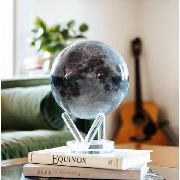 Bola del mundo de 15 cm de diámetro que gira sobre si misma gracias a un sistema de imanes que se activa cuando recibe luz.