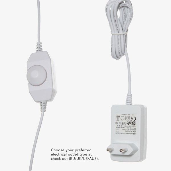Materiales: Base de hierro, Madera contrachapada, vidrio acrílico, cable blanco, LED.